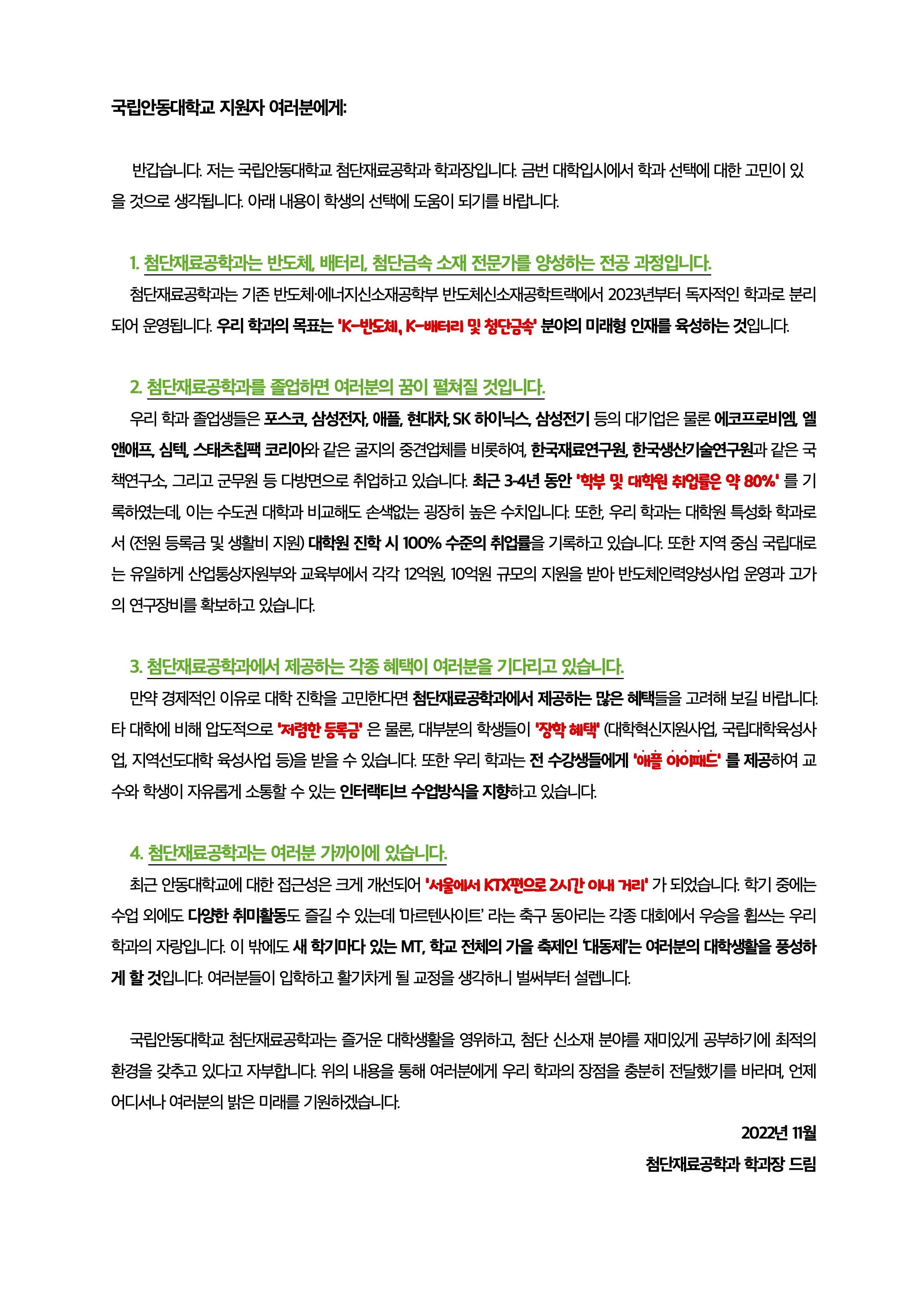 국립경국대학교 첨단재료공학과(반도체,배터리,첨단금속)